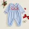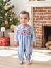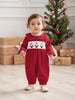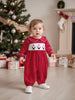 This charming Christmas Smocked Jumpsuit features delicate piping, traditional smocking, cute Christmas character embroidery and a classic Peter Pan collar, making it the perfect festive outfit for little ones.