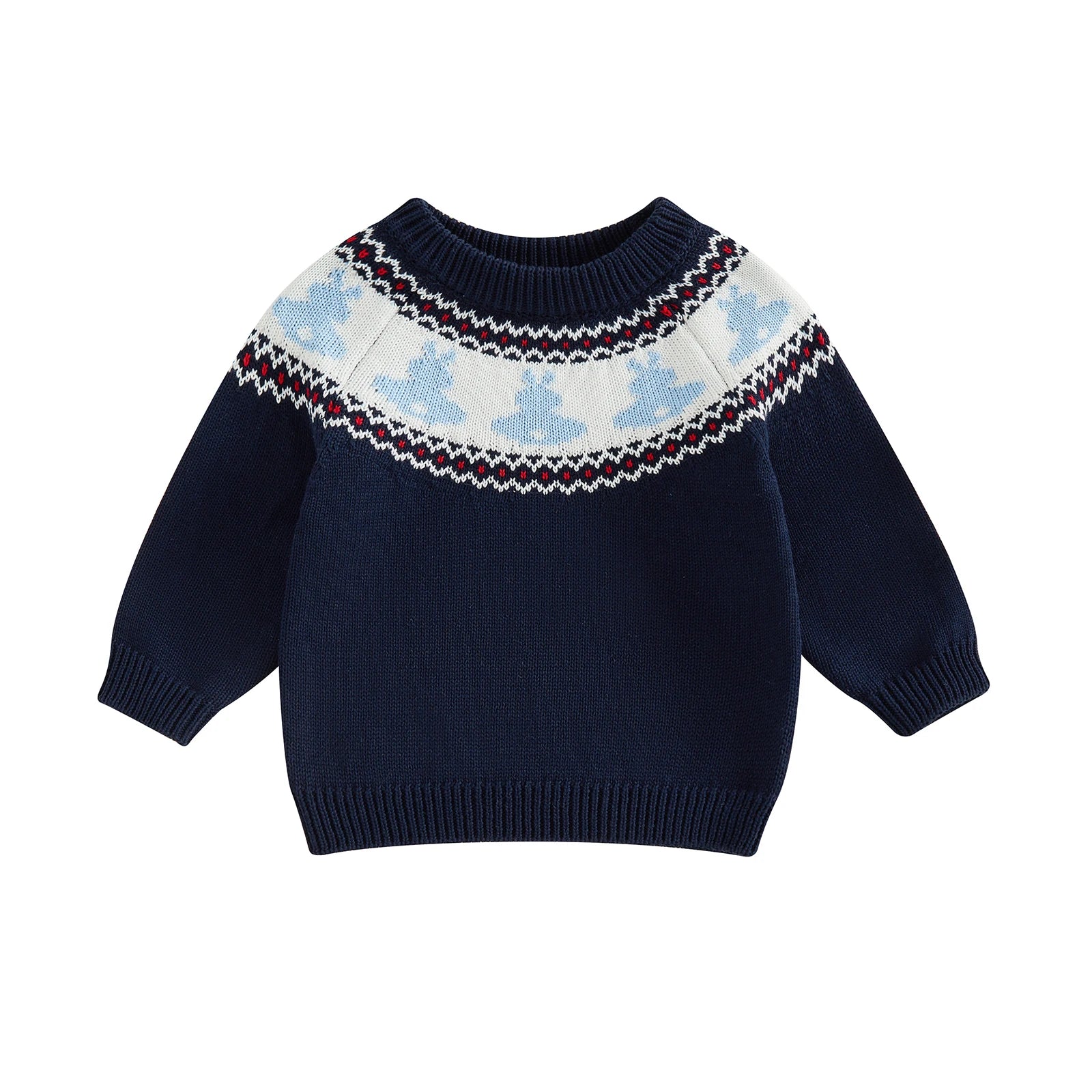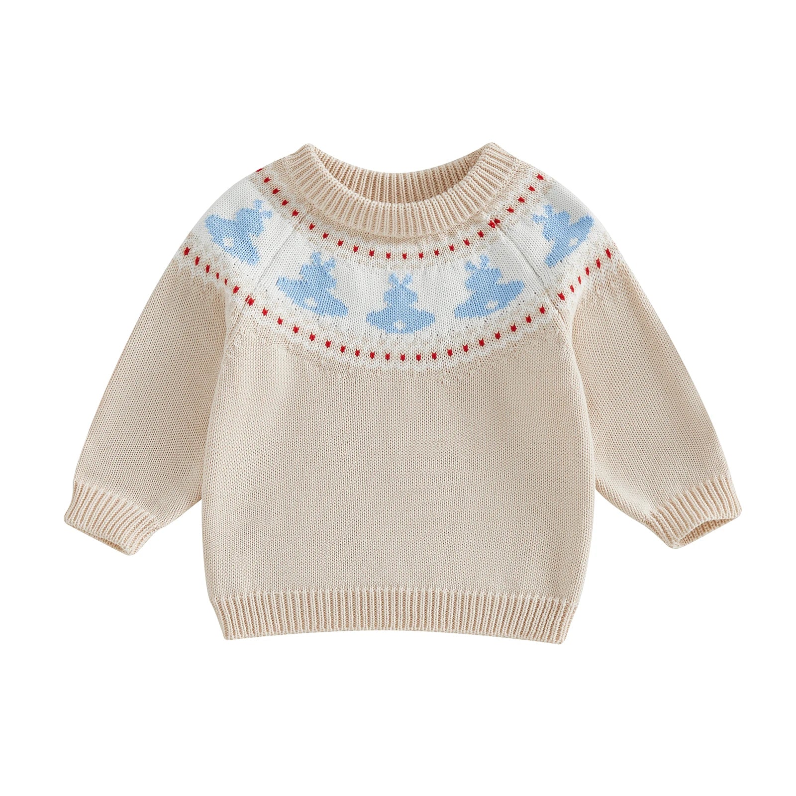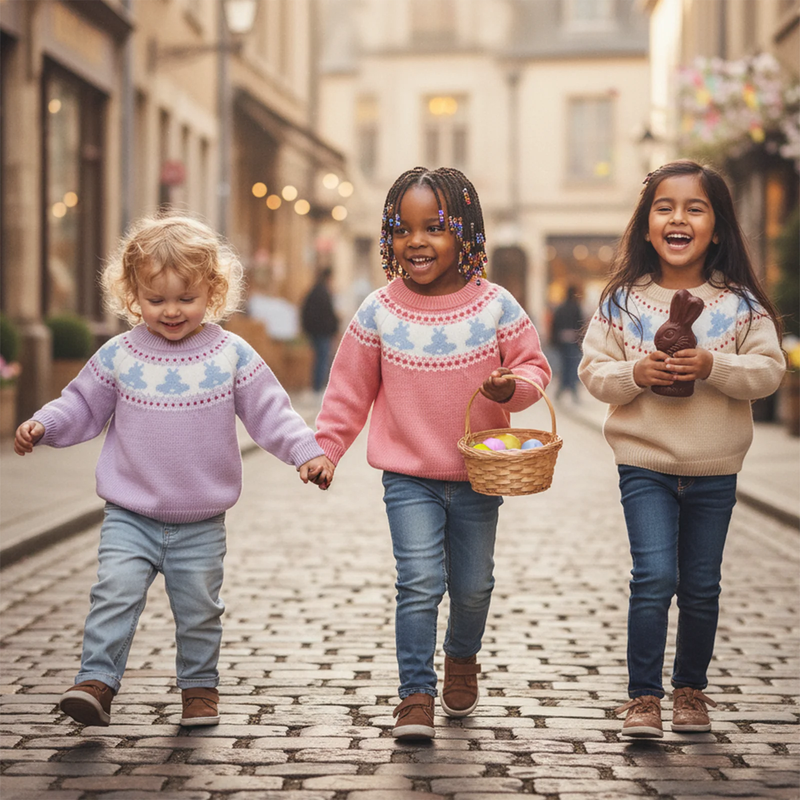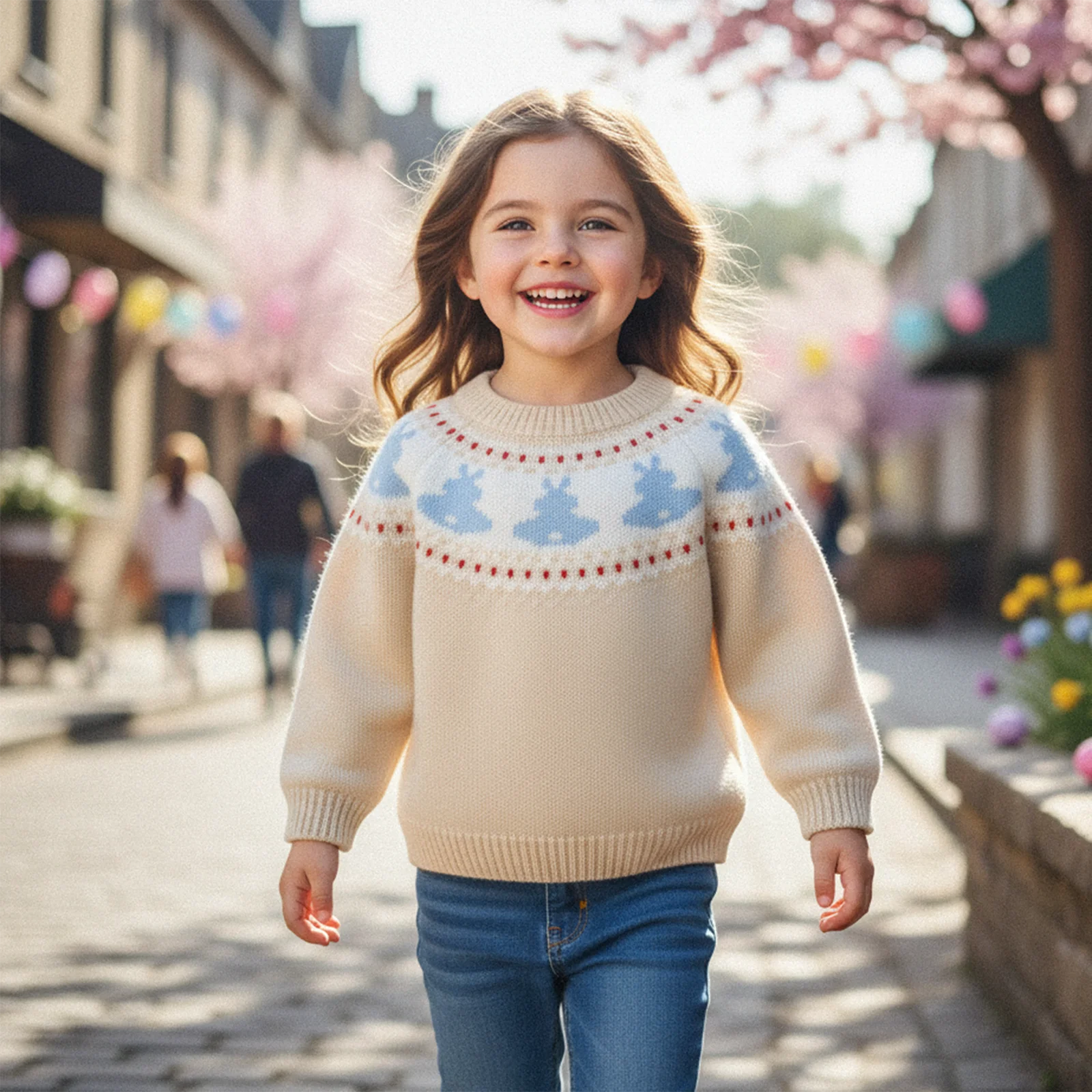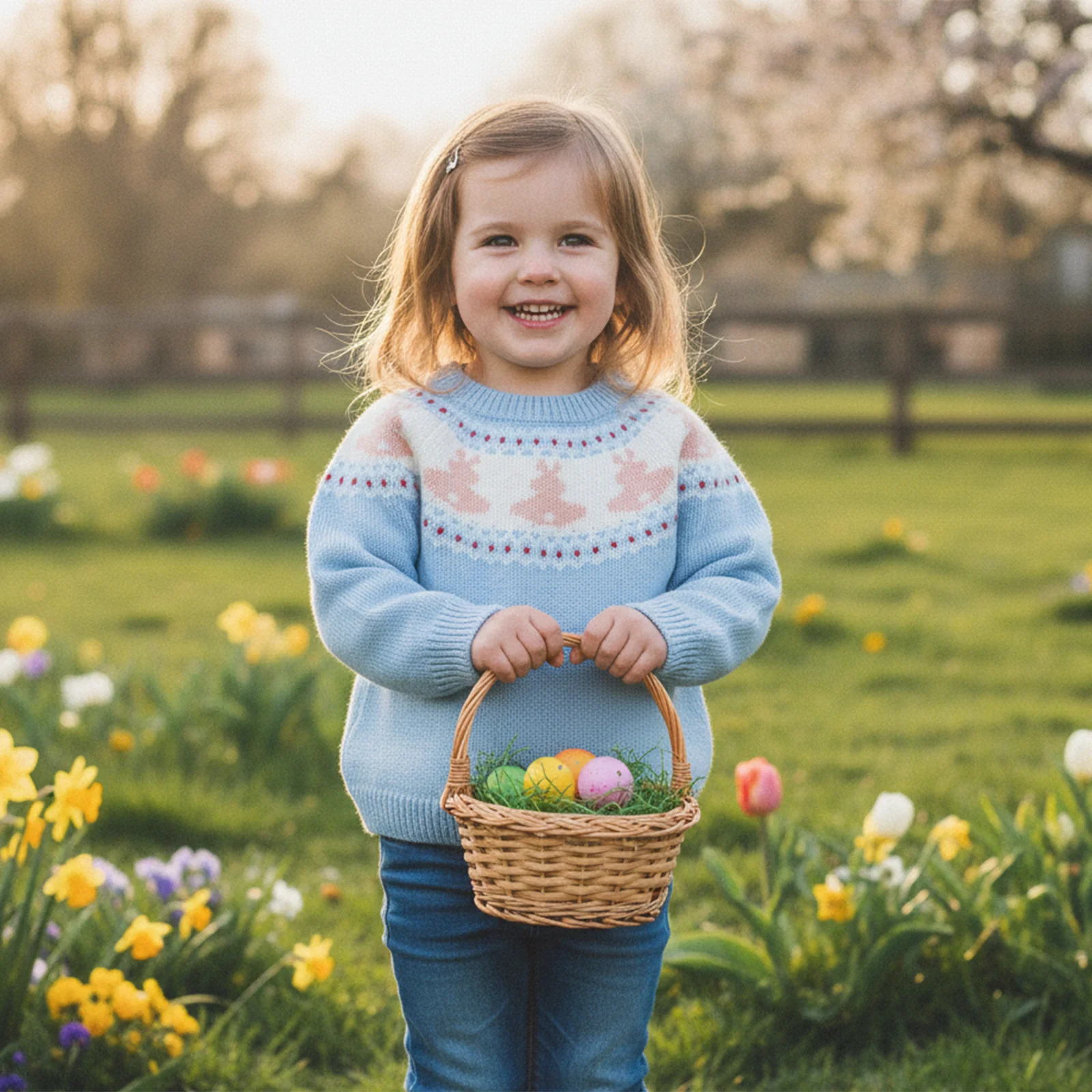 Celebrate Easter in timeless style with our Bunny Faire Isle Sweater. This charming children's knit features a classic Fair Isle pattern accented with adorable little bunnies hopping around the neckline—perfect for festive photos and seasonal gatherings. Crafted for comfort and durability, it's available in five gorgeous shades to suit every child's personality. A wardrobe essential that blends traditional design with playful details your little one will love wearing again and again.