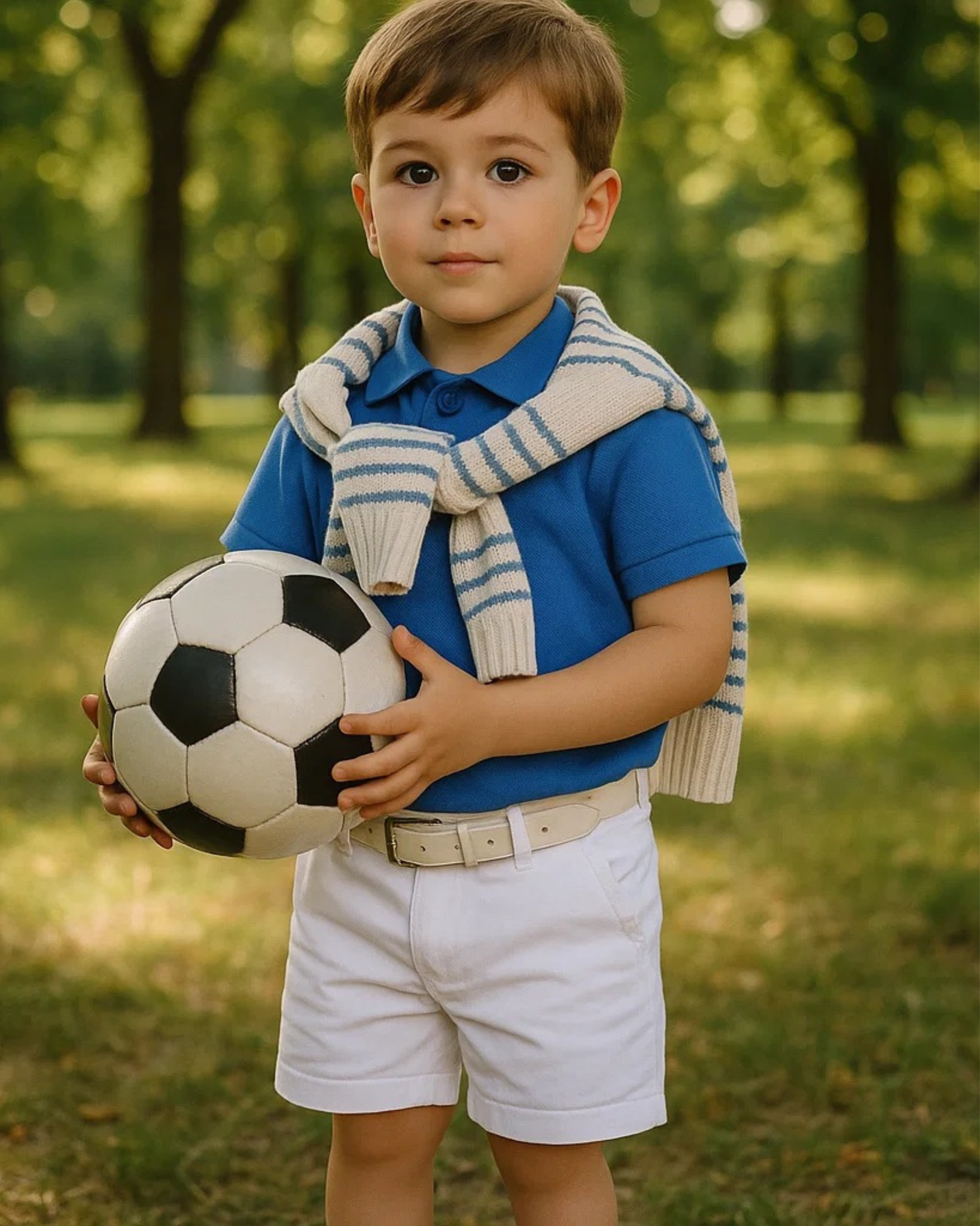 A timeless classic with a fresh, modern charm. This powder blue and white striped sweater is crafted from soft 100% cotton for all day comfort and breathability. Designed with a traditional crew neck and delicate detailing, it brings a sweet, polished look to your little one’s wardrobe. Whether layered over a collared shirt or worn on its own, it’s the perfect blend of heritage style and everyday ease.