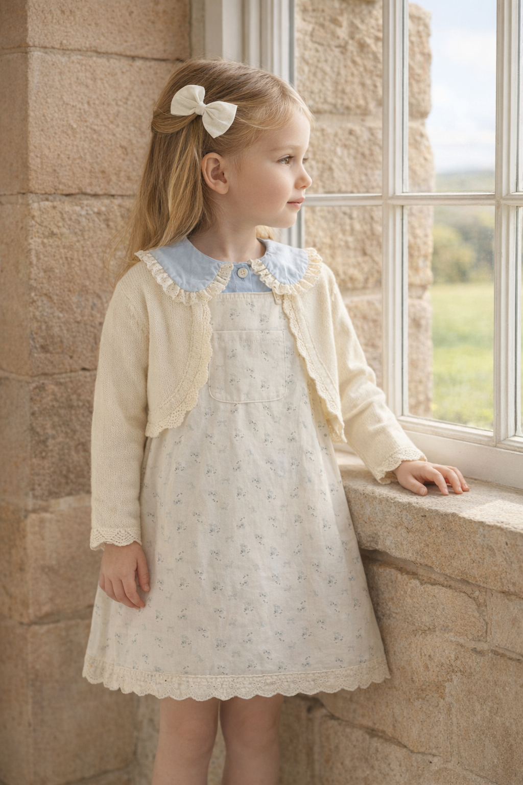 Un cárdigan tipo bolero extremadamente versátil para tener en el guardarropa de cualquier niña. El delicado borde de ganchillo le da un toque final al bolero. Incluso podría sentirse como una verdadera princesa Charlotte cuando usa este cárdigan.