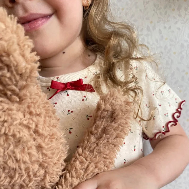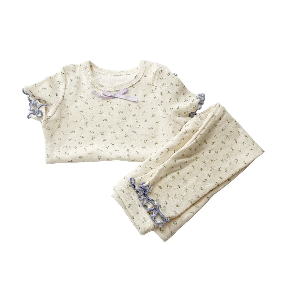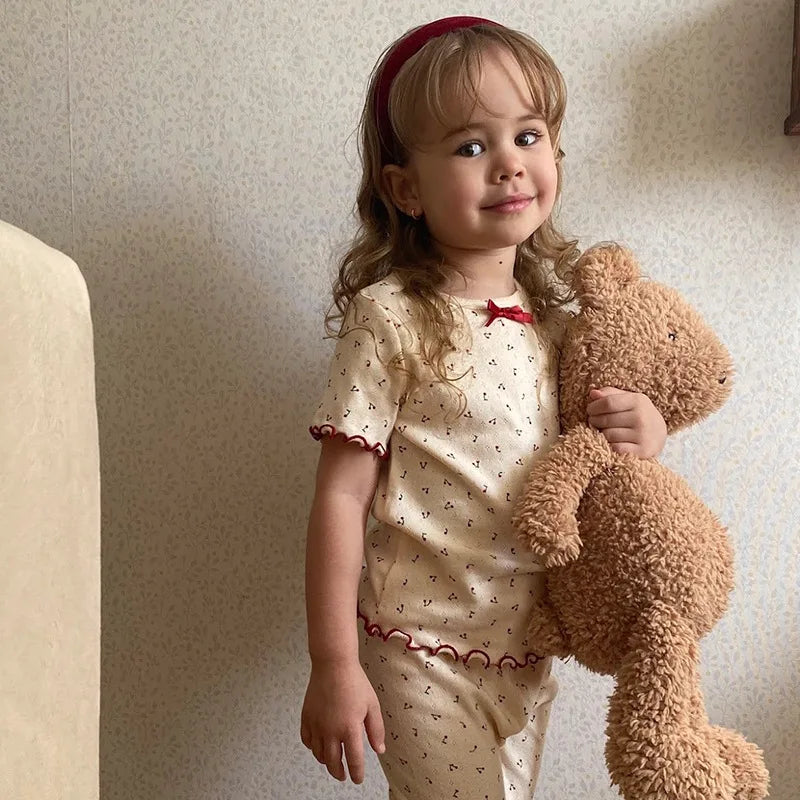 Mantieni i tuoi piccoli al caldo per tutta la notte con il pigiama in maglia di cotone "Deidre". Pensato per le bambine, offre un comfort morbido e traspirante, perfetto per un sonno ristoratore. Gli adorabili e femminili motivi a boccioli di fiori aggiungono un tocco di charme. Con maniche corte e pantaloni lunghi, è perfetto per le notti più calde.